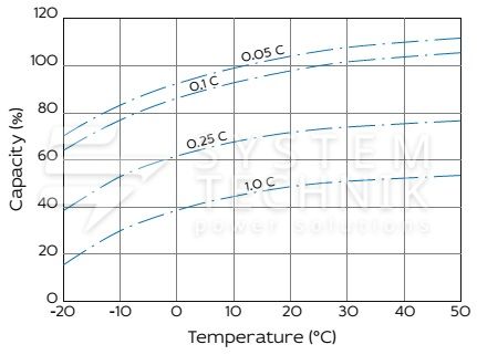 - Срок хранения без подзаряда: 6 мес. при 25°C;
