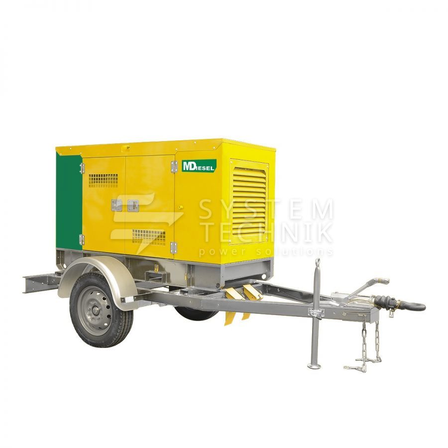Дизельный генератор MitsuDiesel МД ЭД-30-Т400-1РКМ29 в шумозащитном кожухе на шасси на прицепе в Лесном
