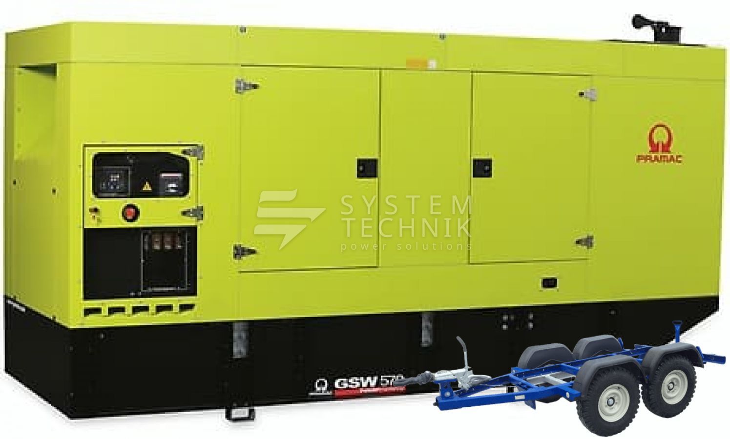 - Дизельный генератор Pramac GSW 570 M 230V 3Ф В кожухе на прицепе