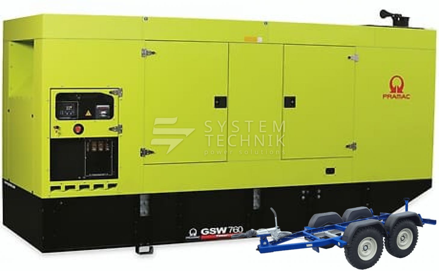 - Дизельный генератор Pramac GSW 760 M 440V В кожухе на прицепе