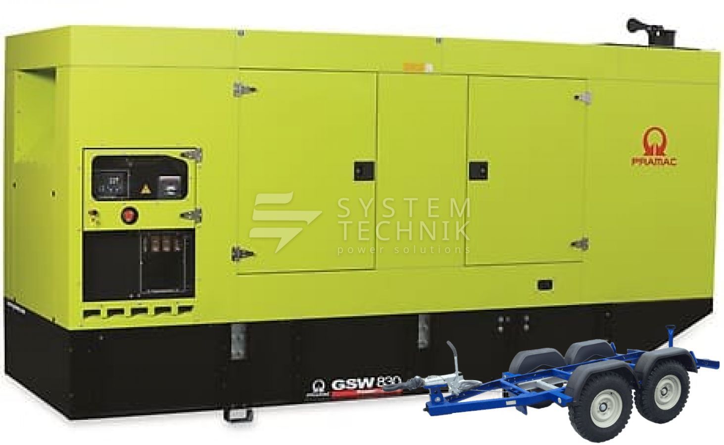 - Дизельный генератор Pramac GSW 830 DO 380V В кожухе на прицепе